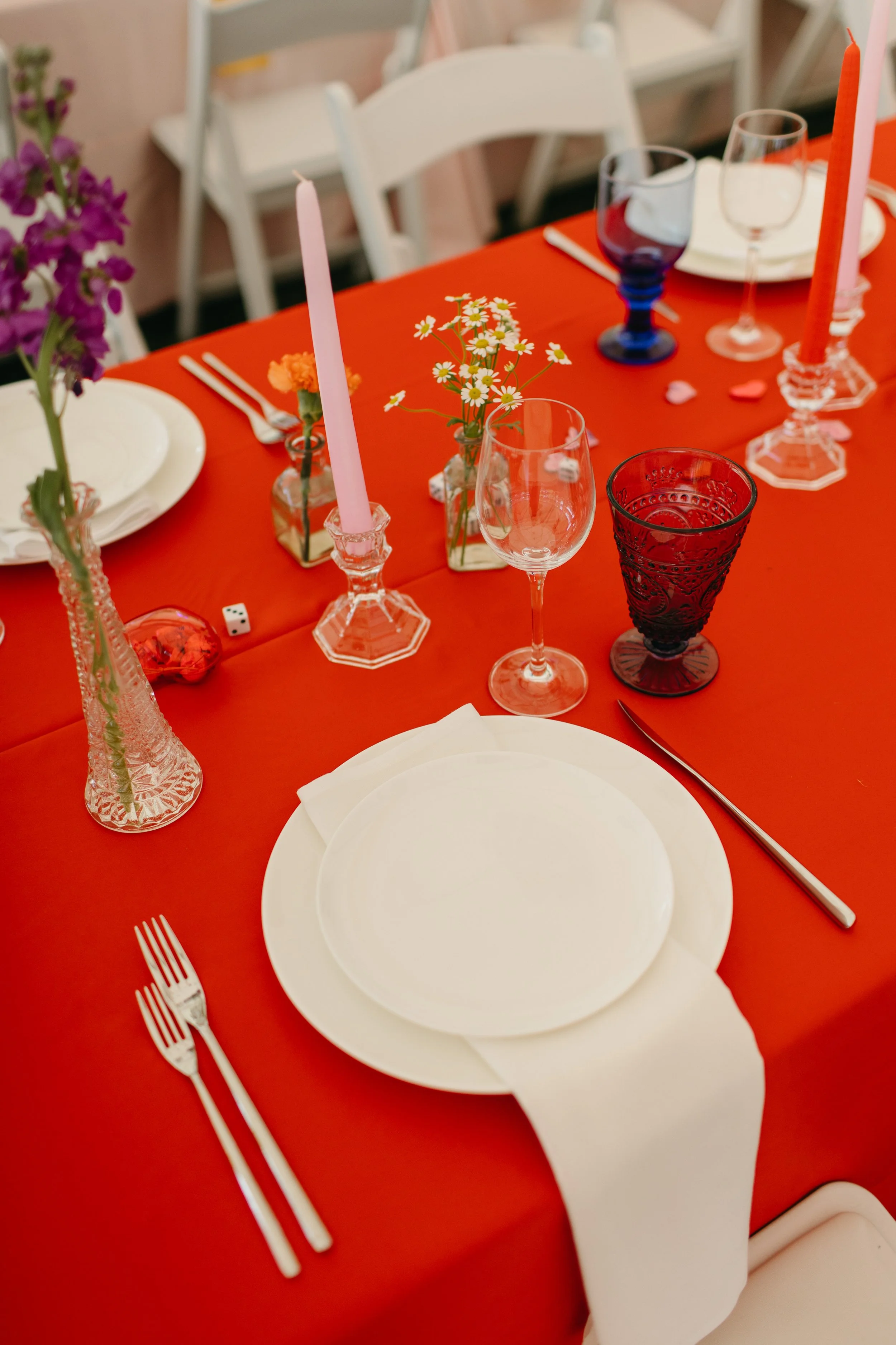 From playing card table numbers and mismatched tables, to sharing their favourite Subway cookies and McDonald’s cheeseburgers at midnight, to Magic 8 Balls and temporary tattoos, Madison and Josh wanted all the unexpected, kitschy, and colourful details—and their guests’ attire was no exception.